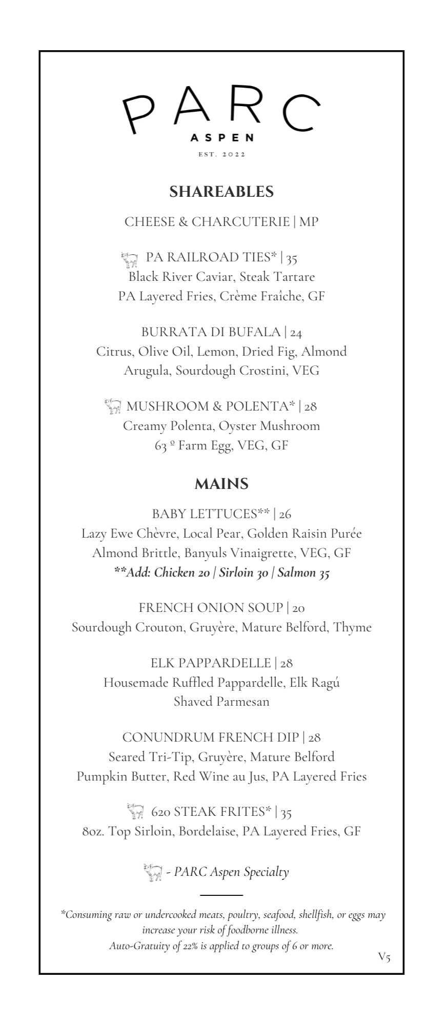 Whether you’re enjoying après-ski bites, meeting friends after work, or exploring downtown Aspen’s restaurant scene, PARC’s bar menu delivers a taste of fine dining in Aspen without the fine-dining price. Each dish pairs beautifully with our curated wine list and craft cocktails, making it a favorite spot for both locals and visitors.