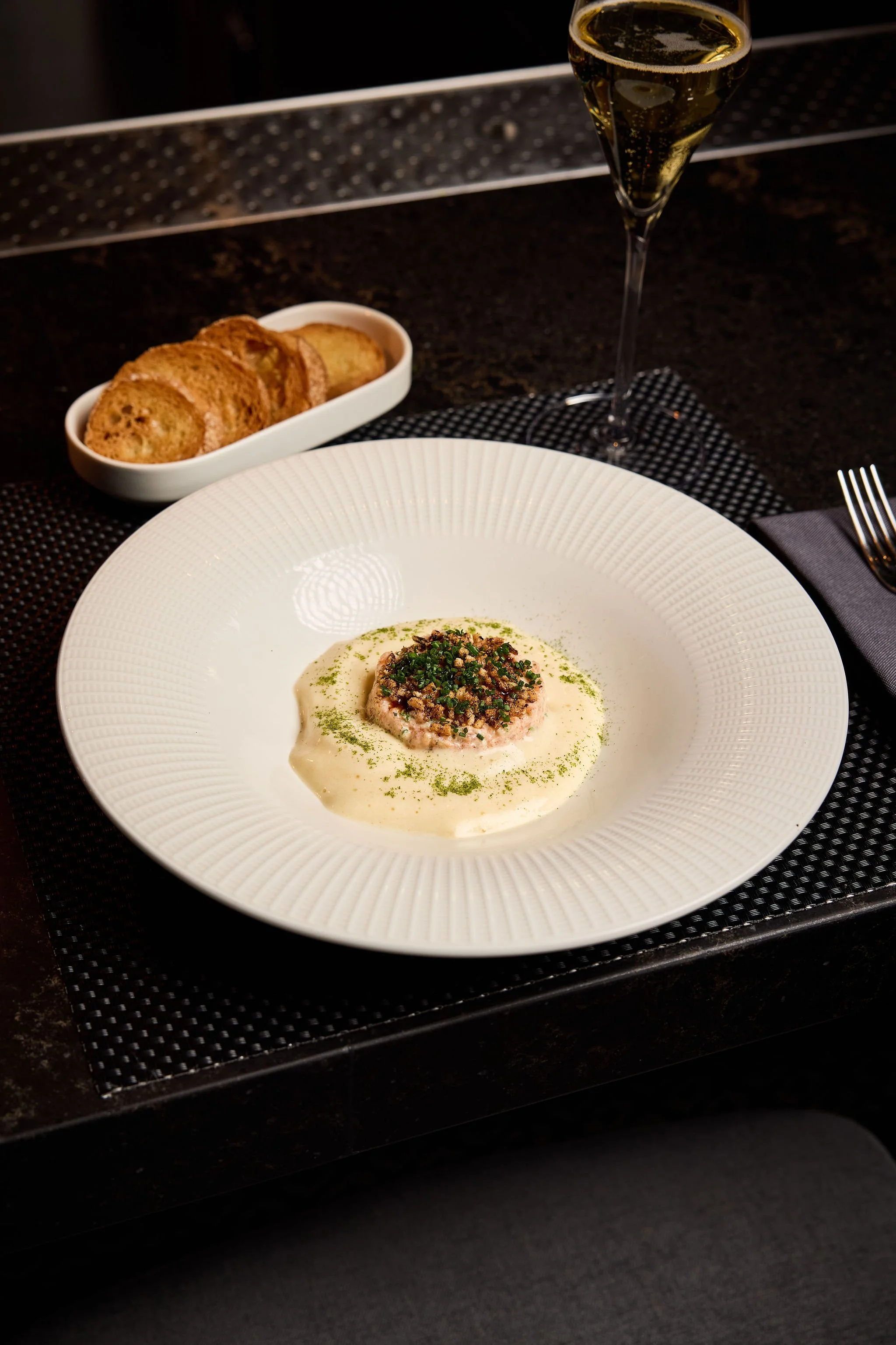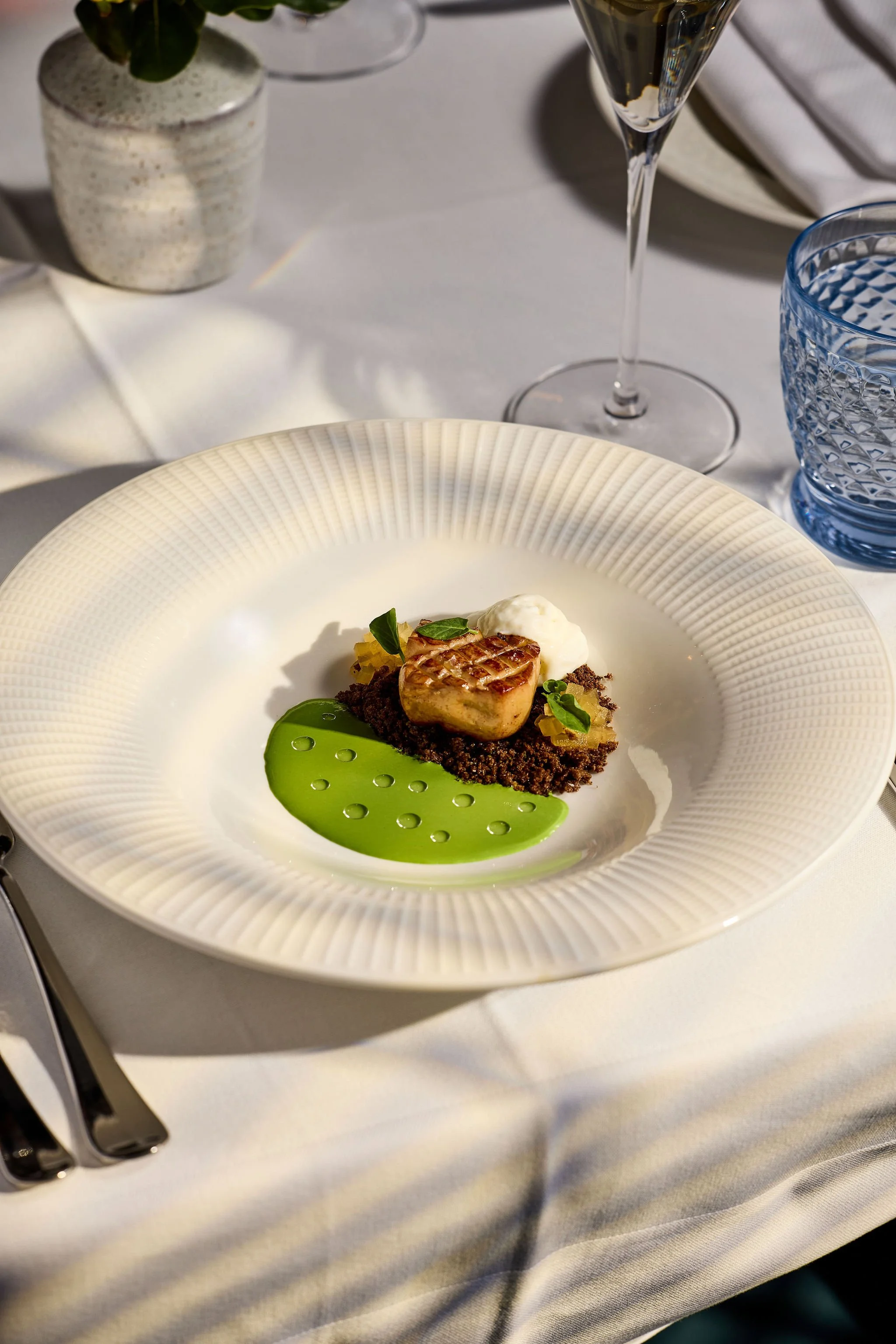 Experience a menu unlike any other in town, where each course reflects Chef Stefano Schiaffino’s global perspective. Influenced by his Peruvian roots, dishes like Halibut Crudo and Ribeye showcase vibrant, layered flavors, while French technique is expressed through Seared Foie Gras and a delicate Celeriac Soufflé.