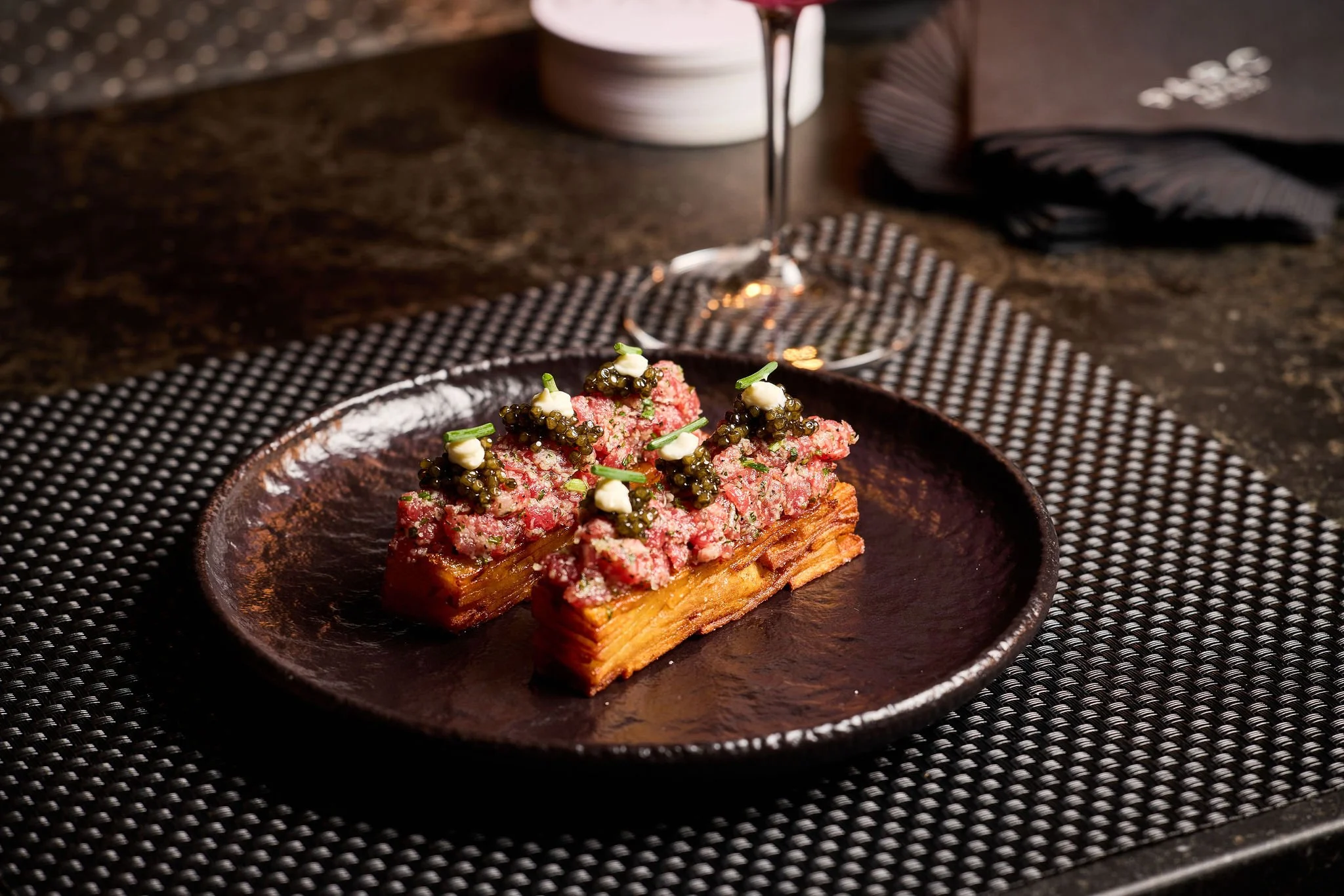 Discover our bar menu in Aspen, offering a more approachable take on fine dining with dishes priced under $35. Featuring standout selections like the Railroad Ties—layered fries with steak tartare, crème fraîche, and caviar—and classic Steak Frites, the menu delivers elevated flavors in a relaxed setting. Thoughtfully crafted and perfect for casual dining or a night at the bar, it’s an inviting way to experience PARC Aspen.